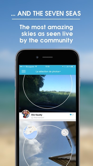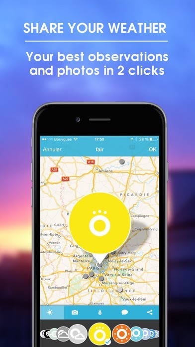 SNS機能が搭載された画期的なお天気アプリです。ユーザー一人一人が気象予報士なんです。世界中のユーザーがその場所の天気と空の写真を投稿することで、リアルタイムなお天気を見ることができます。これから行く旅行の時や、行きたい場所を見つけるのにも役立ちそうですね。