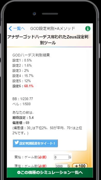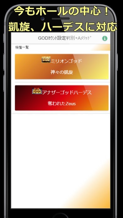 5号機の人気機種、神々の凱旋、アナザーゴッドハーデスの設定判別を搭載しているのでGODシリーズならばこのアプリ1つでOKです。自分が実践した台の設定がなんだったのかを検討したり、実戦時のヤメ時の判断材料として活用できます。