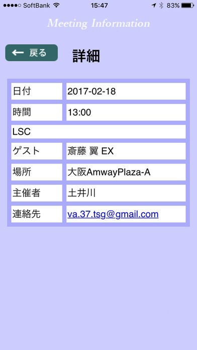 ミーティングに参加する予定のゲストの使命を入力することでミーティング情報を検索することも出来るようになっているので、気になるゲストを中心としてチェックすることができます。