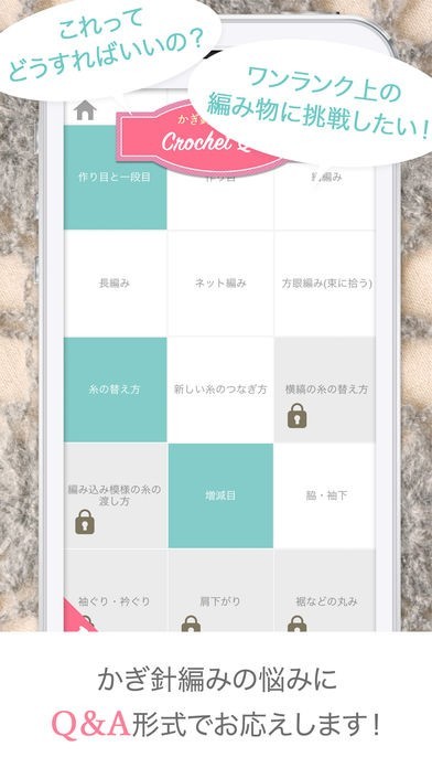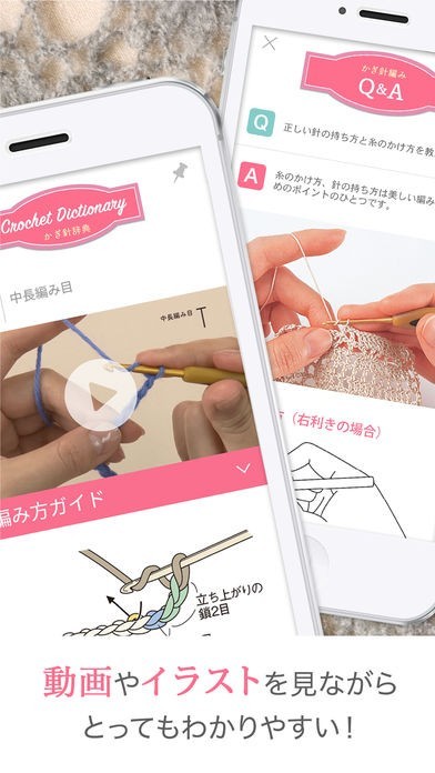 かぎ針編みを動画やイラストの解説を見ながら作ることができます。編み方の質問などQ&Aで直接聞けるので、作業を止めることなく編んでいくことができます。解説が丁寧なのでワンランク上の編み物にも挑戦できます。