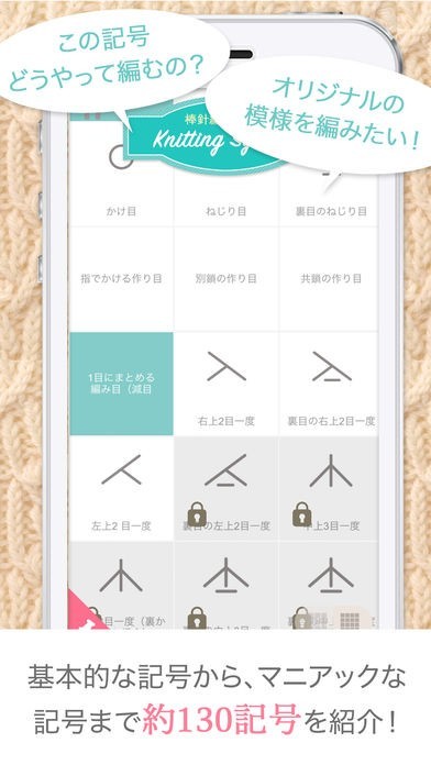 使ってみたい記号やパターンがあれば、お気に入りに登録していつでもチェックすることができます。まとめて見直すことができるので、スマホを傍らに置いて編み物をスムーズに完成させられます。
