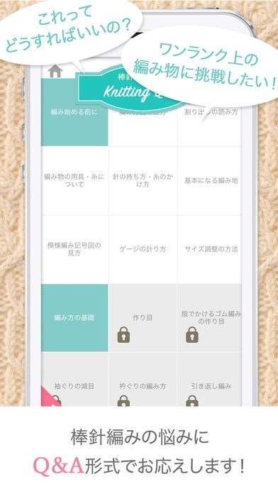 メンズセーターとレディースカーディガンの編み方に関するQ&Aが用意されているので、分からないことや編み物に関する悩みがあれば、手軽に調べて解消することができます。
