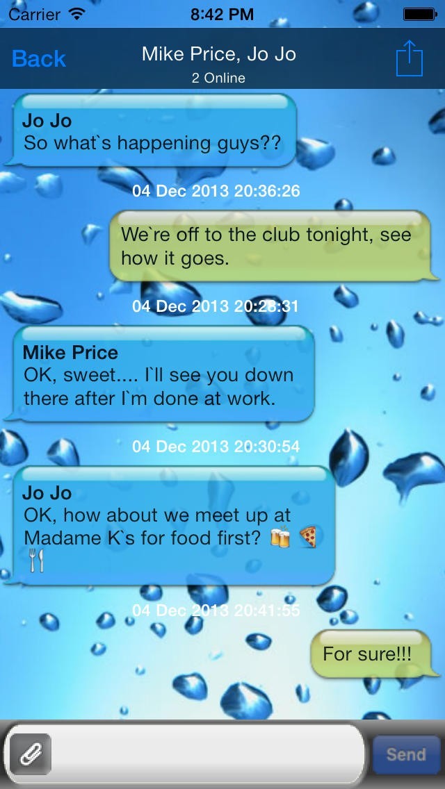 “Downloaded and working within minutes. Great app. I've got the itouch and it's super for pics as well as chats. Can do person to person as well as group chats. Thumbs up.”