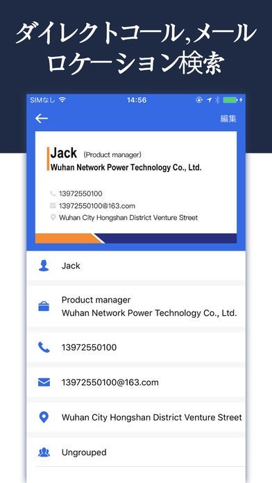 名刺のスキャンは正確な文字として認識されるようになっています。読み取った名刺情報は、そのままスマホのアドレス帳へ移行することができます。また、名刺に書かれている電話番号やメールアドレスに直接連絡することもできます。