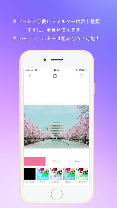 数十種類のフィルターで自分の理想の写真を作成