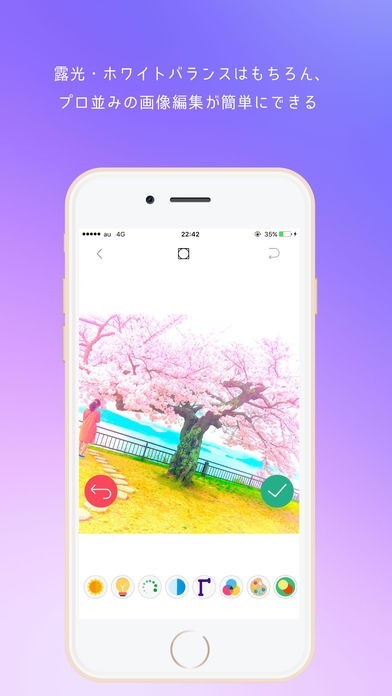 写真をかわいくしたり美したりキレイにしたりすることが出来るアプリ。 写真をとったけど出来栄えがイマイチ。 もっとかわいい写真にしたい。 写真写りに自信がないから写真は撮りたくない。 他の人にかわいくした写真を見せたい。 このような時にこのアプリを使うことで解決してくれます。例えば、美白フィルターや美肌フィルターによって顔の肌を変化させてくれたり、露出などを変更してバッチリの写真になります。 そして写真はツイッターなどに簡単に共有できます。