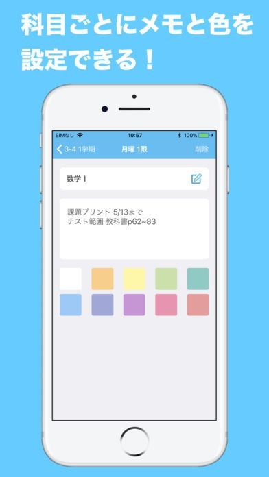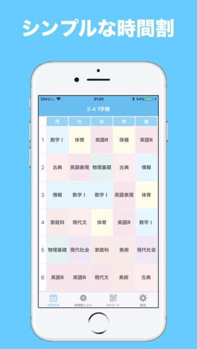 App Storeより引用シンプル!楽!みんなでシェア!が特徴の中学生・高校生に便利な時間割アプリです。