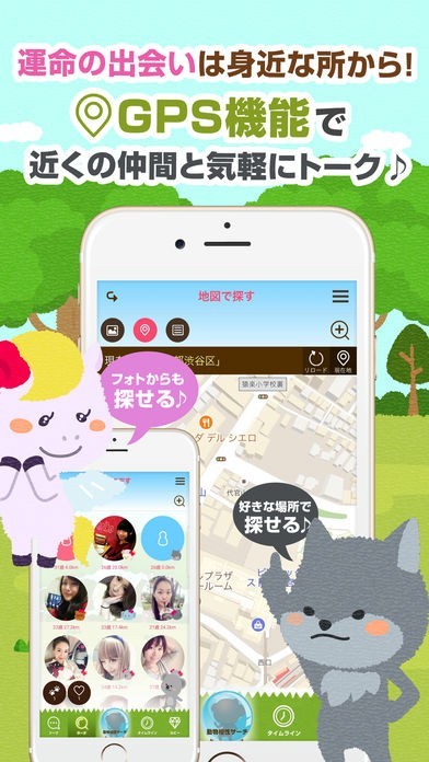 「zoo talk 【動物の守護神でマッチング】」は、アプリ独自に自分の守護神となる動物が利用時の登録情報から決められて“動物相性サーチ”機能によって、自分の守護神から相性のよさそうな人を探せるマッチングアプリです。 もちろん、普通に年齢や住んでいる地域から相手を検索することもできます。 GPS機能で近くにいる人とチャットでメッセージをやり取りすることもできます。
