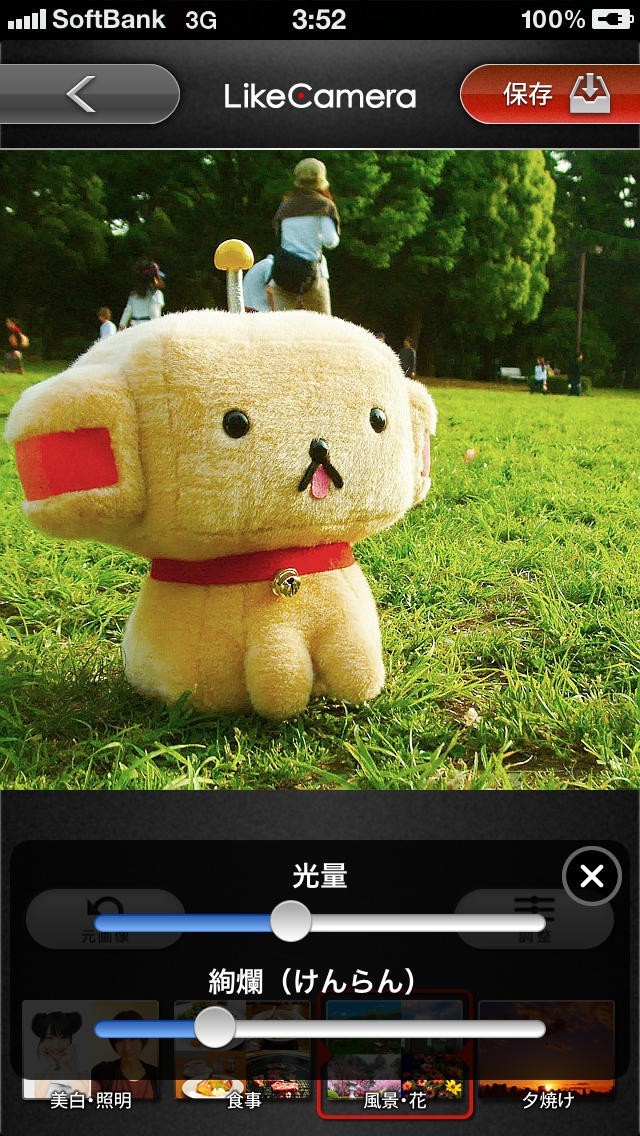 補正した写真はアプリからTwitterに投稿できます。(facebookはβテスト中) Instagramなど他のSNSへの投稿もLikeカメラ(likecamera)で補正した画像をカメラロールに保存することができるので、お手軽に行うことが可能です。