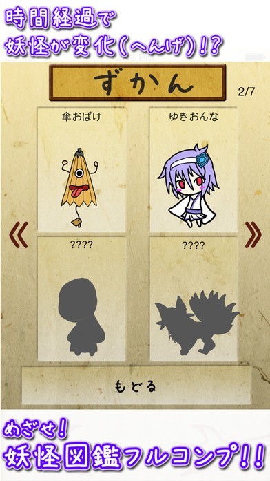 「妖怪育成計画」は、かわいい妖怪たちを育てて図鑑の完成を目指すゲームです。図鑑に掲載されている妖怪に関する詳細な解説は必見です。友達を集めて妖怪に関するマニアックな知識を披露してみましょう。かっぱやゆきおんななど誰もが一度は聞いたことのある妖怪たちが登場します。ゲームをプレイしていない間も自動的に妖怪たちは成長していきます。仕事や学業が忙しくて集中してゲームをプレイする時間が確保できないというプレイヤーにうれしい仕様です。プレイ時間が短くて済みますが、常に成長を続けているという意味では24時間プレイし続けることができる妖怪育成ゲームです。