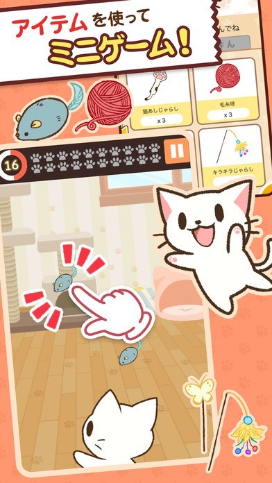 トイレのミニゲーム以外にも、お部屋で猫じゃらしなどを使って猫とコミュニケーションをとることができます。そのため自宅でペットが飼えない寂しさを埋めたいときにおすすめです。