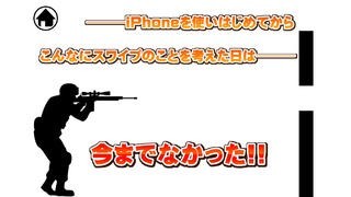 ライフルを構えているスナイパーをスワイプすることで狙撃するゲームです。壁の穴を正確に狙撃できたかどうかで得点が決まり、最高得点は2000点です。左から右へライフルと平行にスワイプするのがコツです。シンプルなゲームで1回のプレイ時間も短いので気軽に何回でも遊ぶことができます。 スワイプの研究をして高得点を出すことができれば一流のスワイパーです。スワイプするスピードや角度、指を離すタイミングなど様々な要素で得点が変わってきます。