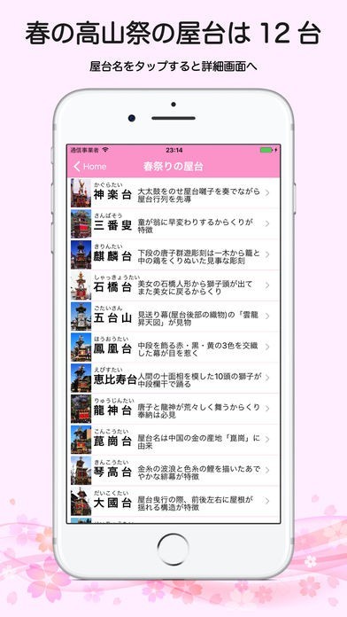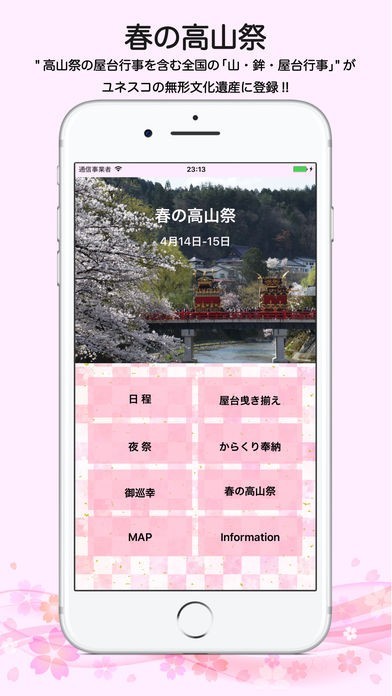 App Storeより引用飛騨高山に春を告げる「春の高山祭」の紹介アプリです。