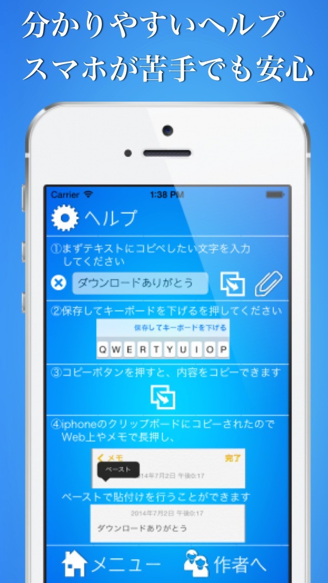 コピーボタンを押すだけ、ほしいときに長押しだけの簡単操作