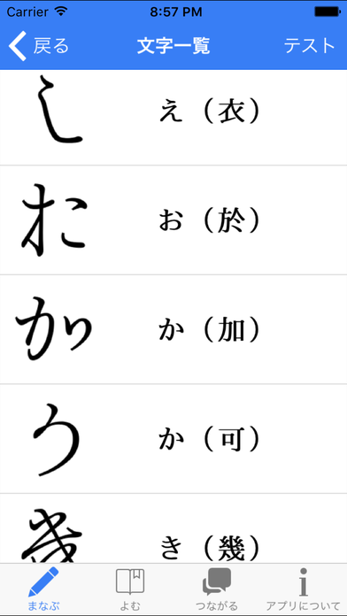 KuLAが提供するテスト機能やソーシャル機能を使えば、独りでは難しいくずし字の学習も、楽しく簡単なものになるはずです。