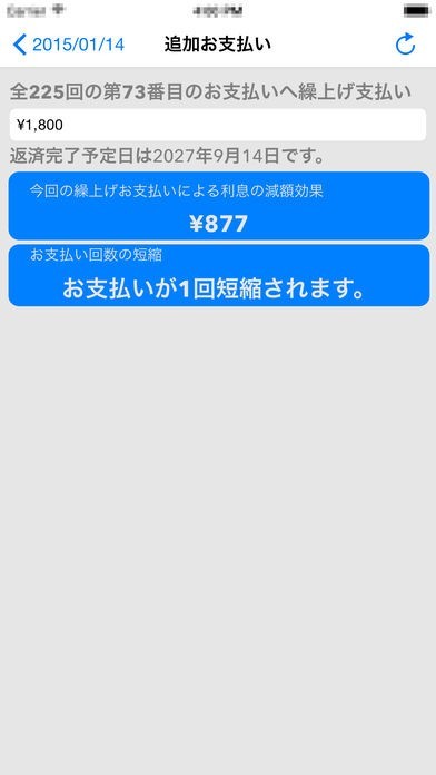 App Storeより引用住宅ローンの利息軽減と早期返済を望むあなたを支援するアプリです。固定金利(元利均等返済)住宅ローンの期間短縮型繰上げ返済に対応します。毎回の定額お支払いに合わせて任意の繰上げ返済額を随時上乗せして入力することができ、これを継続してモニターすることで無理せず計画的にローン早期返済を目指してください。簡易ローン計算機として、将来のローン返済の試算シュミーレータとして、またローン返済完了のその日まで、長期に渡る継続的な監視・管理ツール(最も本領発揮の使用法)として活用してください。