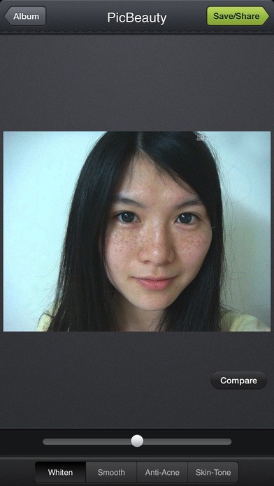 撮った写真の肌の色を自由に変えて綺麗な肌に加工することができる。