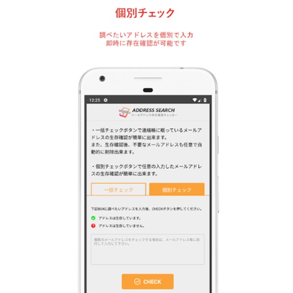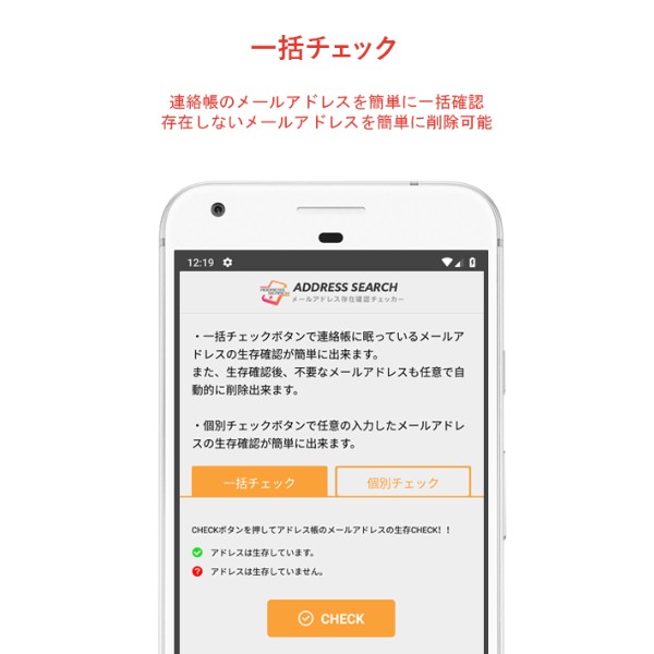 電話帳に登録してあるメールアドレスがまだ使われているか一括チェックできるとっても便利なアプリ!!