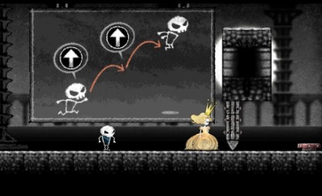 可愛いどくろがお姫様を救い出すアクションゲーム「Dokuro」は、黒板にチョークで描いたようなイラストが魅力の、絵本のようなアプリゲーム。