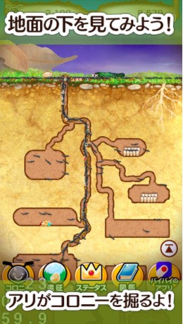 画像引用元:https://itunes.apple.com/jp/app/アリの巣コロニー-ほのぼの観察育成ゲーム/id1210274741?mt=8