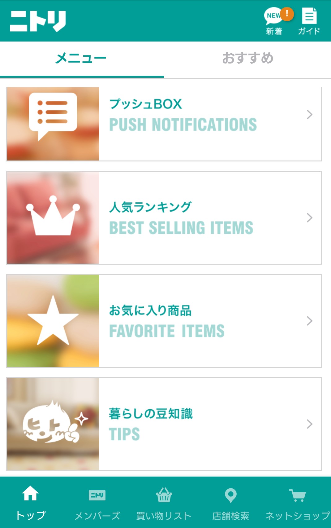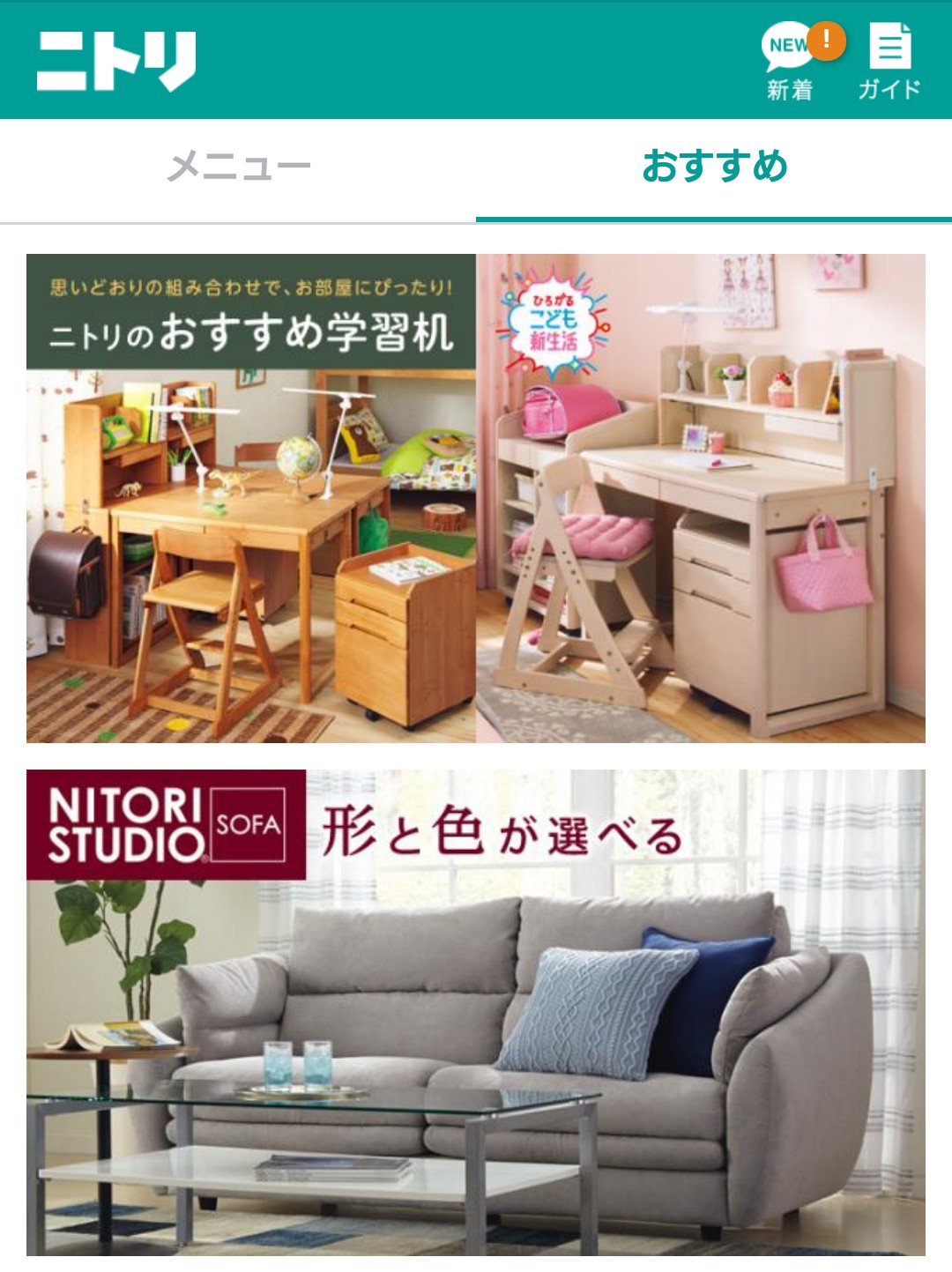 「ニトリアプリ」には、人気ランキング以外にもその時期に合わせた特集や、家具を探すための参考情報など、パッと見てわかる情報がたくさん詰め込まれています。