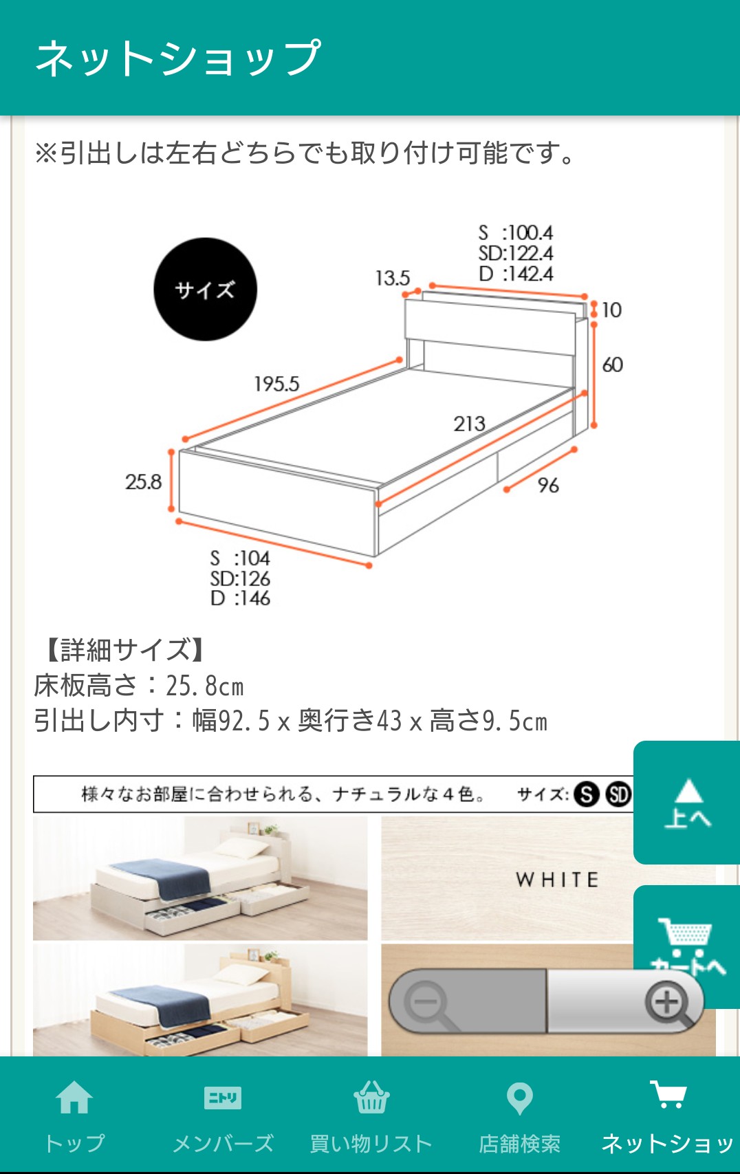 「ニトリアプリ」では気になる家具の写真や寸法を見ながら、そのまま通販で購入することが可能です。