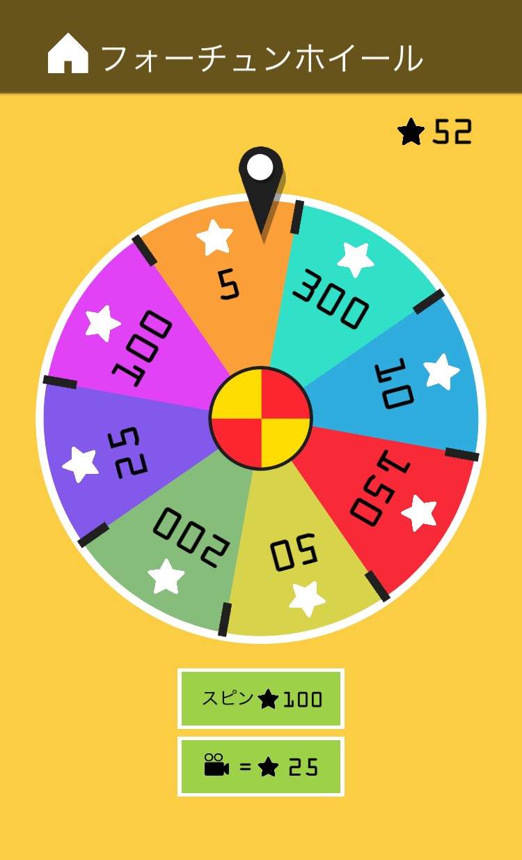 また、★を集めるとフォーチュンホイールというルーレットができます。