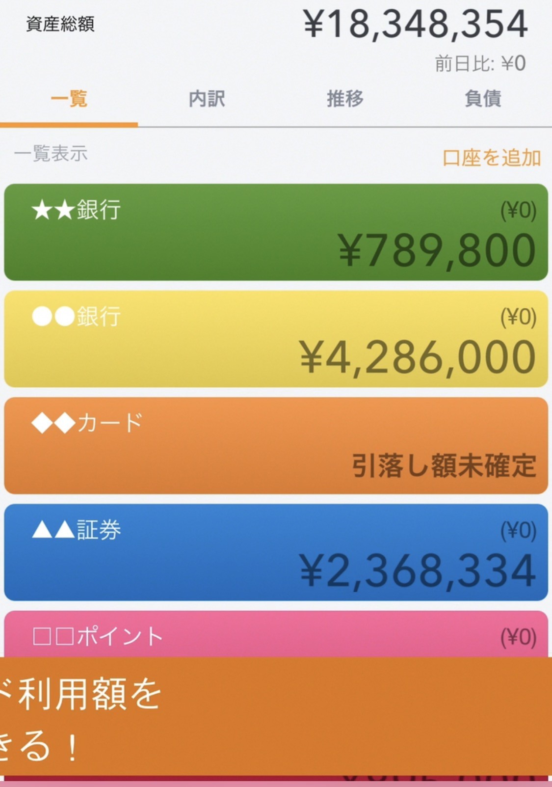 - 銀行やカードなど、連携したい情報を登録