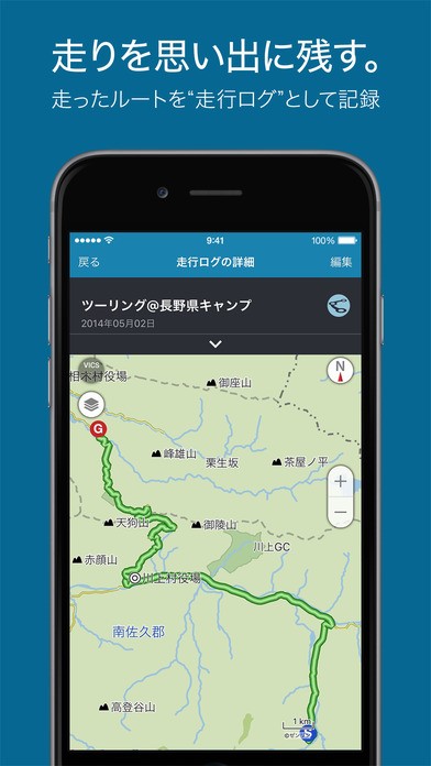 「ツーリングサポーター by NAVITIME」には、走行ログを保存して確認できるバイオグラフィー機能が搭載されています。「こないだ走ったルートを仲間に教えたいな」なんて思ったときには、本アプリの出番になりますね。