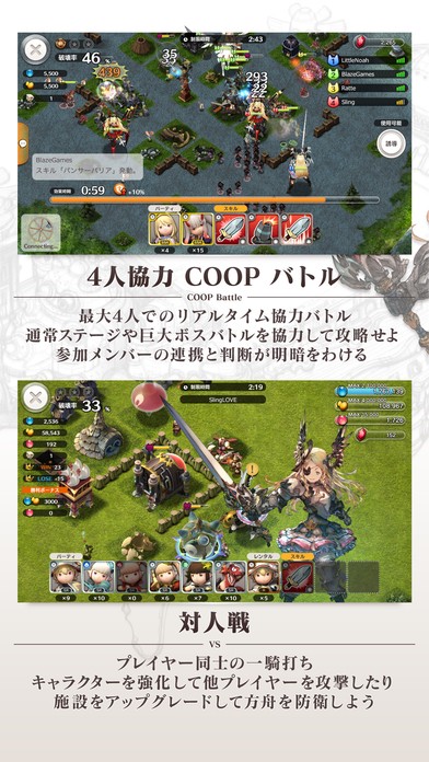 リトルノアにはストラテジージャンルには珍しく、プレイヤーではない明確な敵と退治しての協力プレイが行えます。複数人と協力してのボスバトルは他ストラテジーでは味わえない魅力です。