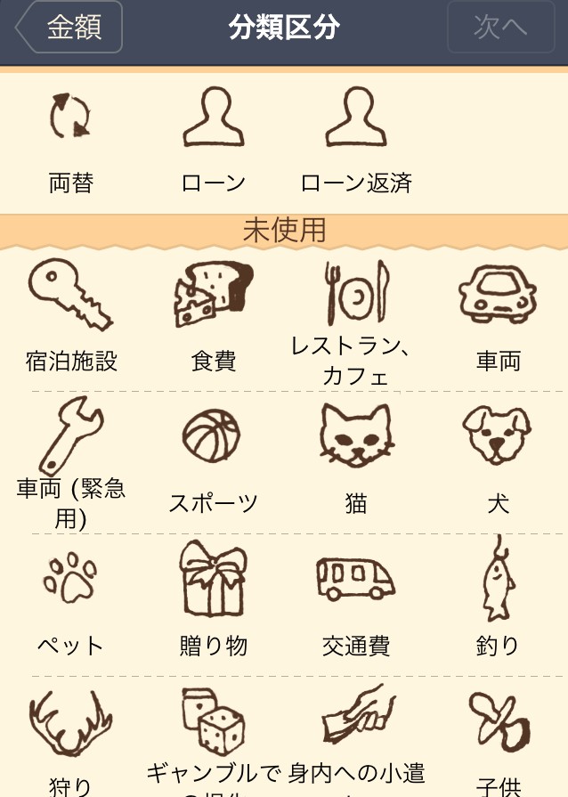 賢く家計簿2で支出や収入を計上するのに手間はかかりません。家計簿アプリをまだ使用されたことがない方の中には、家計簿アプリに難しい印象を持っている方もいるのではないでしょうか?そんな方には賢く家計簿2をオススメします。金額入力では電卓が表示され、一つの画面で支出と収入の入力をすることができます。電卓と一緒に±の表示があり、タップするだけで±の切り替えが可能です。また円だけではなく通貨単位をドルに変更することもできます。この機能は海外旅行のときに便利です。