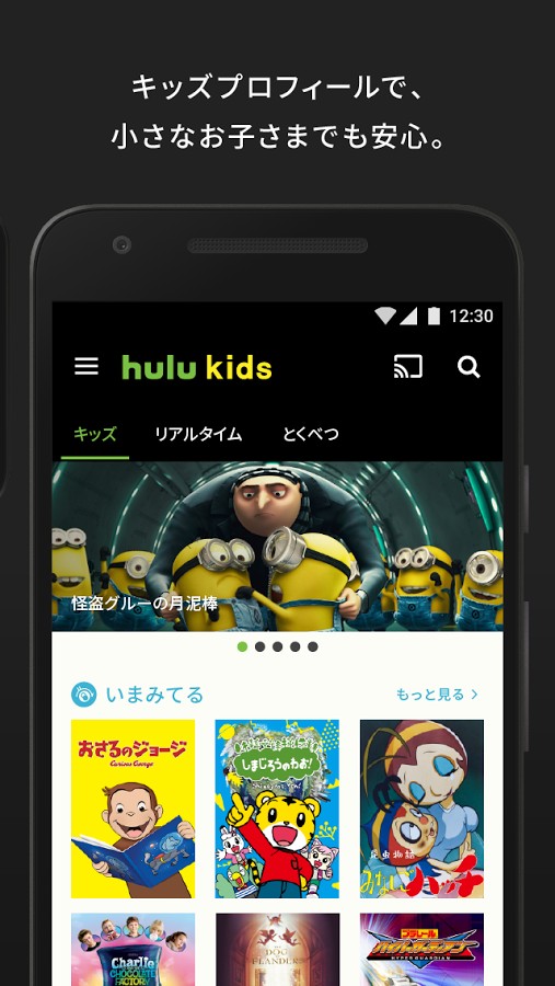 Huluには"キッズプロフィール"と呼ばれるものが用意されています。ここにはキッズ向け作品や子どもも安心して見ることができる作品などが収められています。