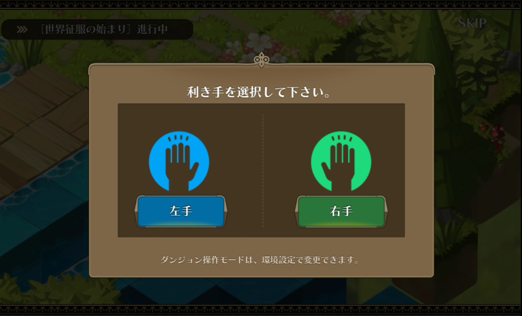 利き手の選択をしたら、いよいよ世界征服の冒険のはじまりです。世界征服できるように頑張ろう!