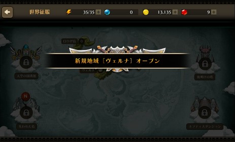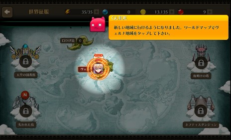 地域すべてのステージをクリアし、ストーリーシナリオを読み終わると、新しい地域が開放されます。
