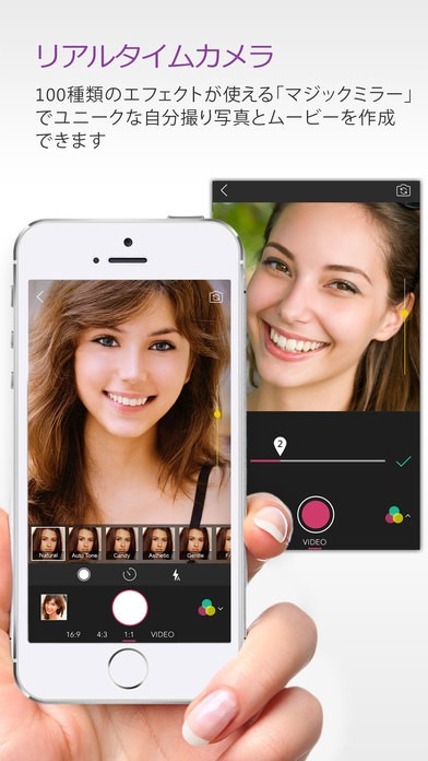 まるでプリクラのような、でもプリクラよりも自然な自撮り写真が撮れるカメラアプリです。撮影時に美肌補正をしてくれる上、フィルターも豊富にあるので、さまざまな雰囲気の可愛くておしゃれな自撮り写真を撮ることが可能です。