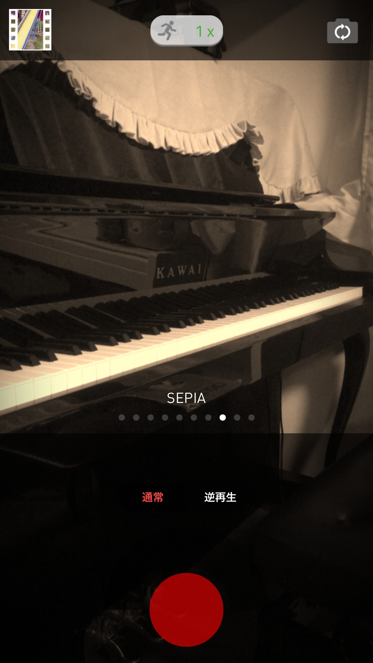 「1x」より大きな数値を選択すると早いスピードで再生される動画が撮影できます。