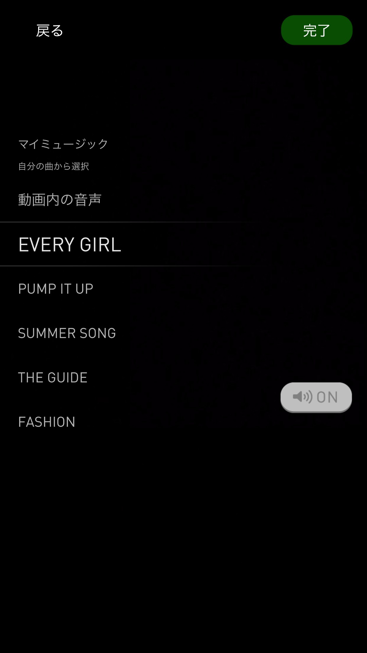 音楽を選択し、画面右上の完了ボタンを押すことで映像作成完了になります。