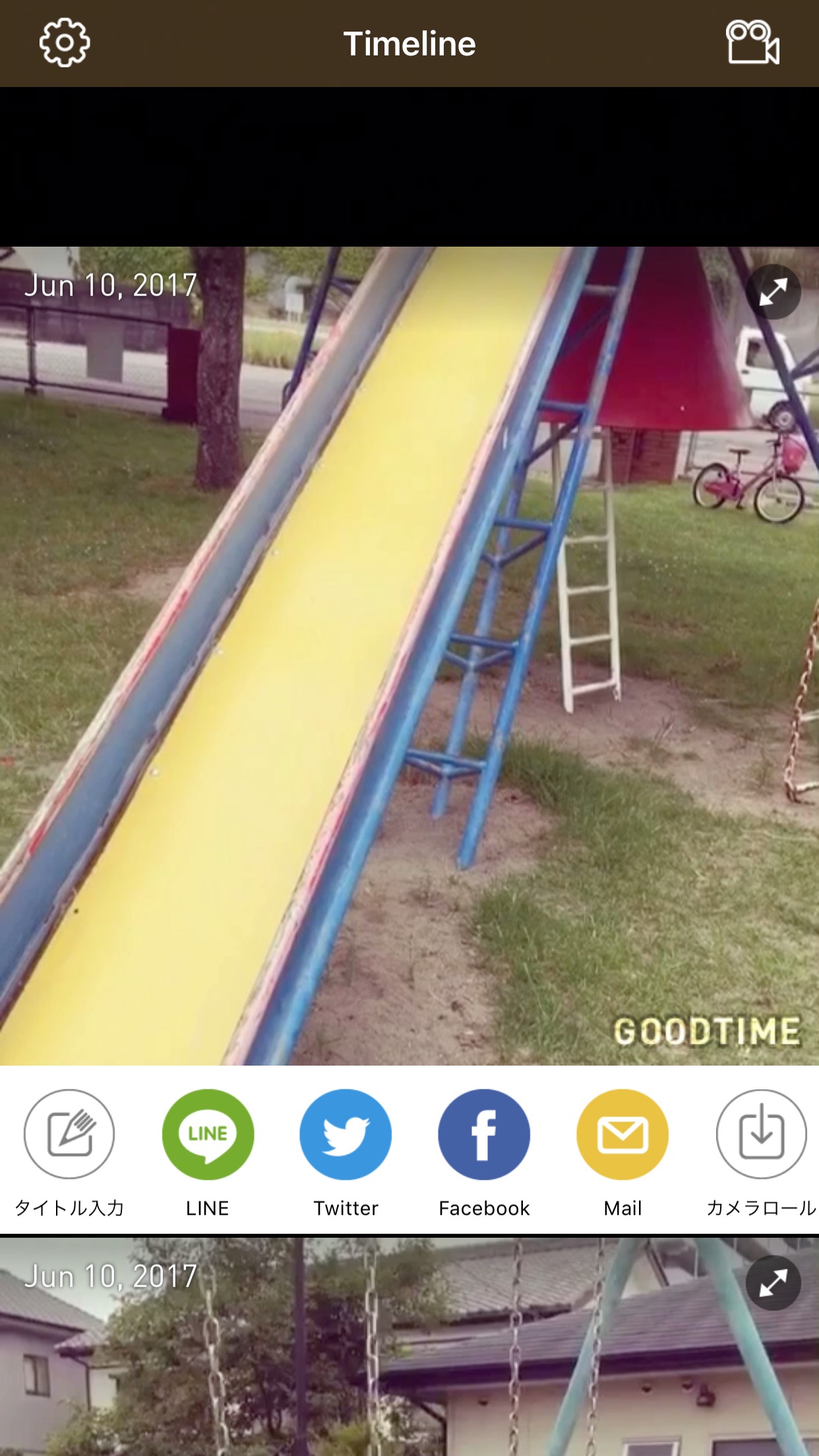 Timeline画面は撮影画面左上のボタンをタップすることで表示することができます。
