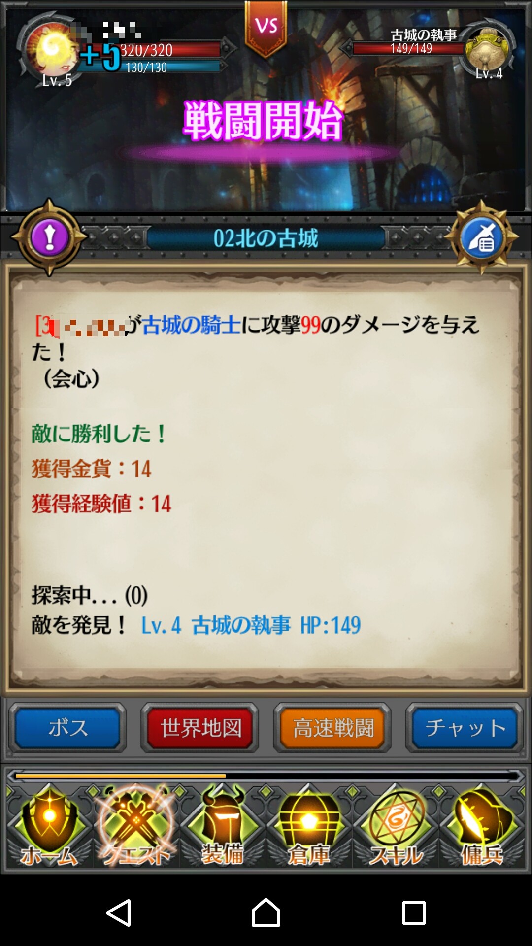 ボスを倒せば次のステージが開放されて、獲得できる経験値や金貨が増えて、装備品も良いものが手に入るようになります。