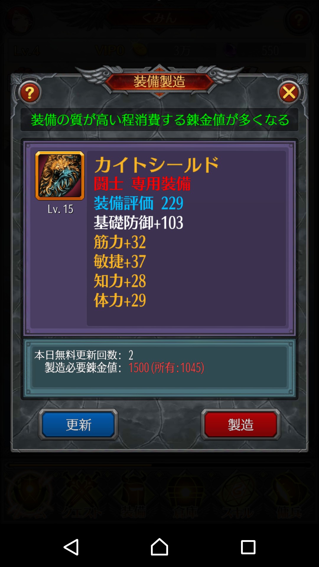 もう使わなくなってしまった装備は、錬金すれば錬金値が手に入り、それを元にして更に強い装備を作ることもできます。