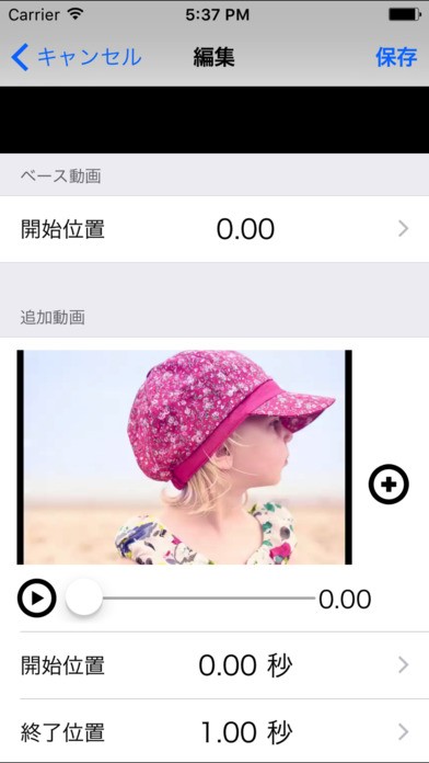 カメラロールに保存している動画の好きな位置に、別の動画を入れることが出来る動画編集アプリです。作成した動画はカメラロールに保存することができます。
