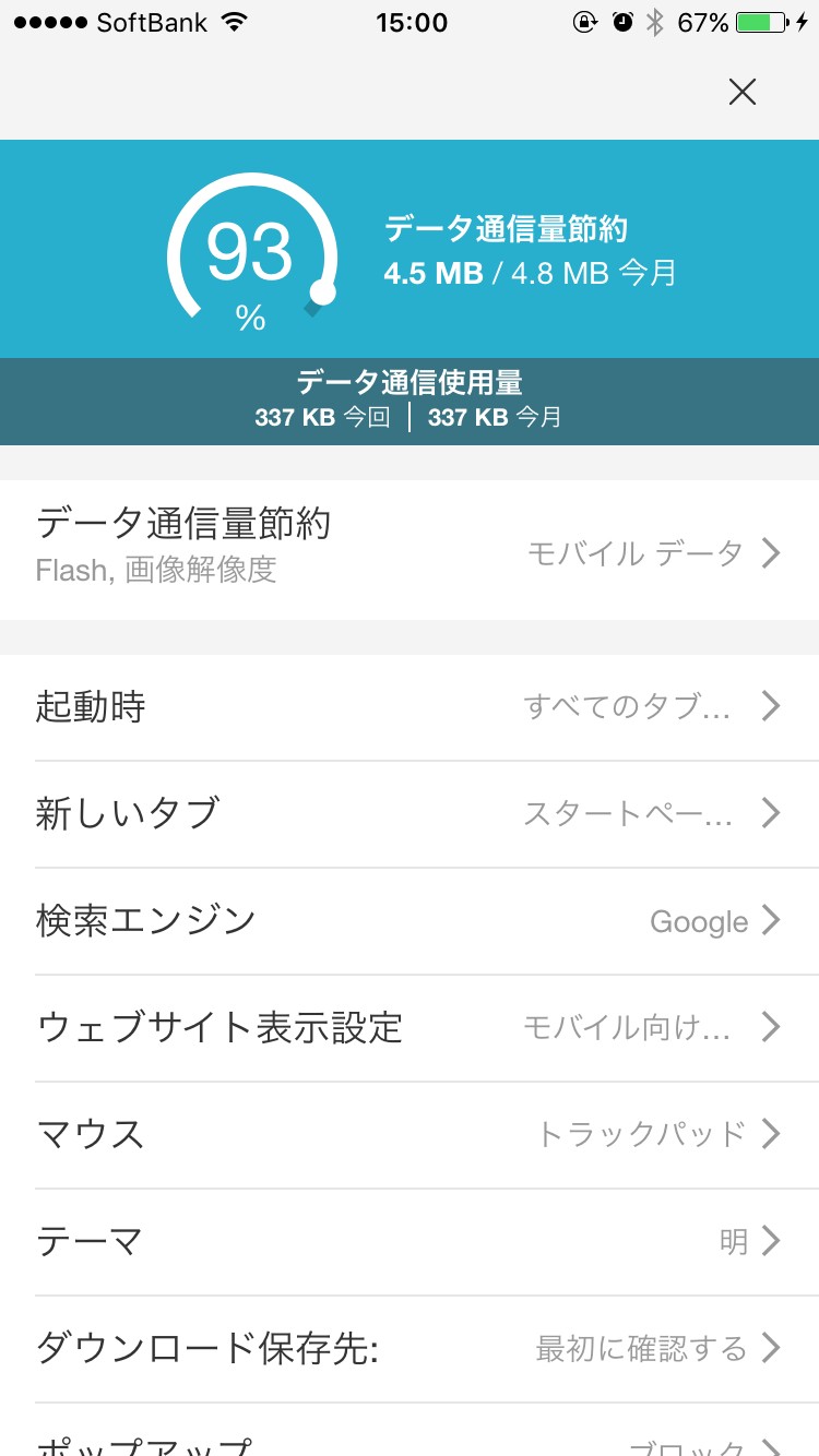 ウェブトラフィック(アクセスのデータ総量)を軽減し、帯減幅を節約します。右上のメニューマークから、歯車マークをクリックしてみると、データの節約詳細が分かります。データ通信量が最大90%まで節約可能です。
