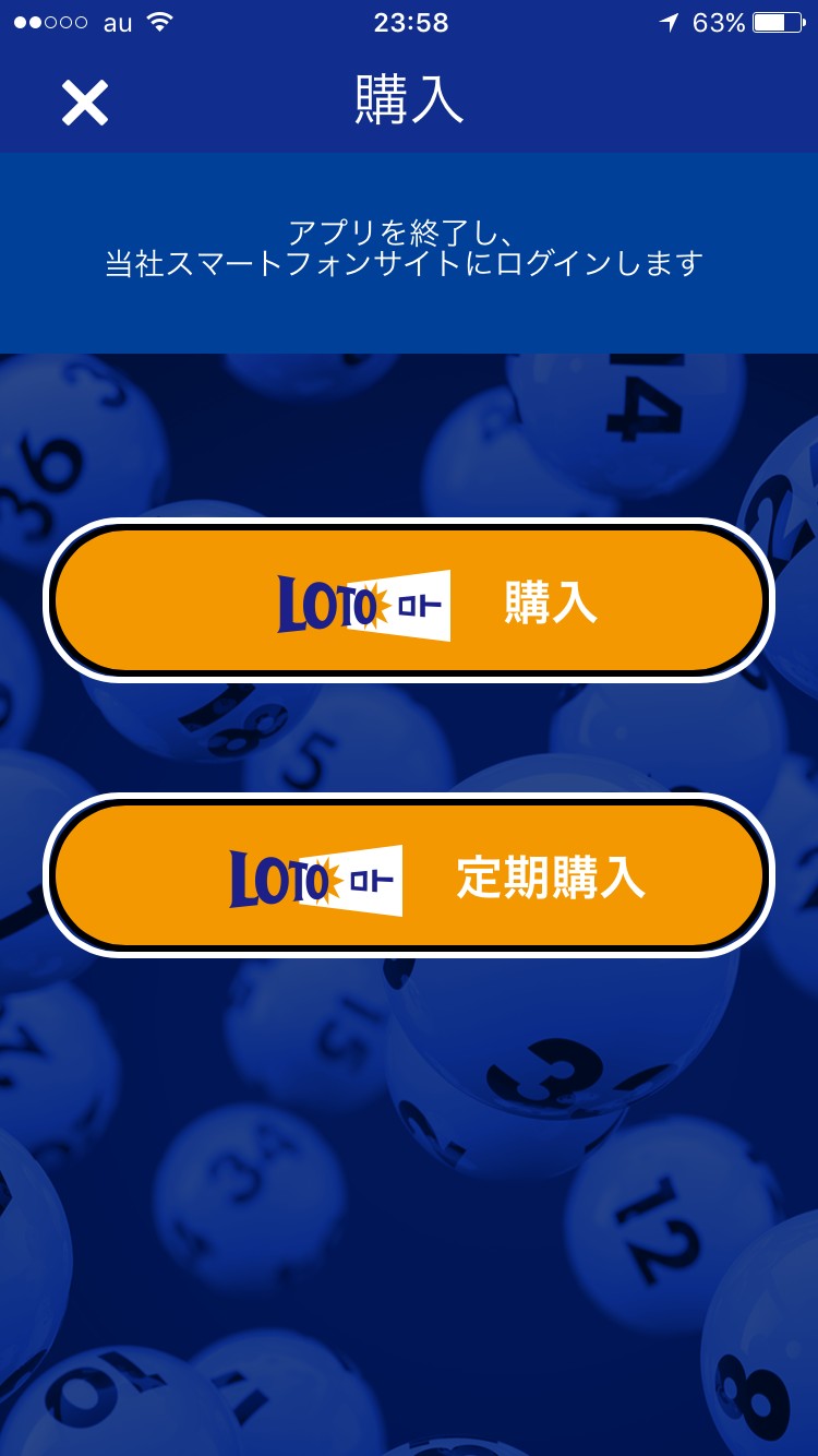 BIG・toto・ロト・ナンバーズのいずれかのタブを選び、右下の「購入する」をタップ!