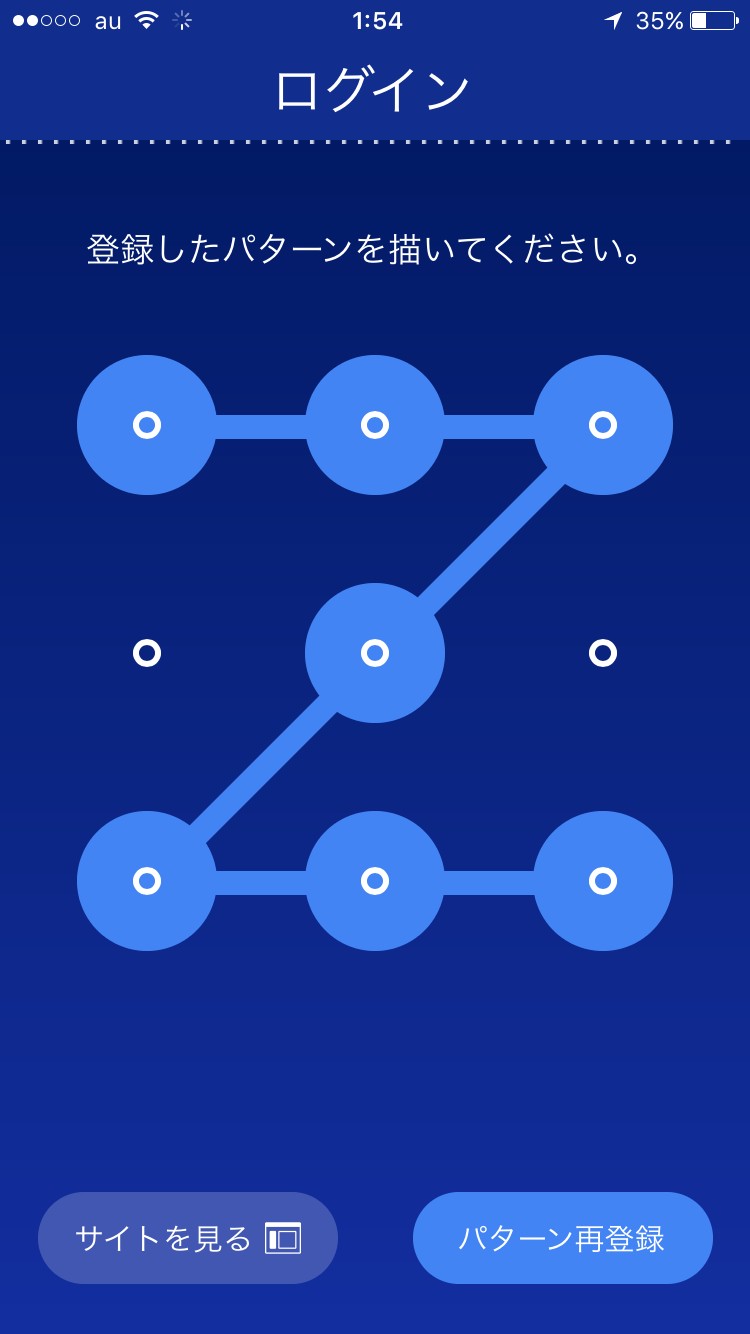 、ログインパターンを設定すると、次回からはこのログインパターンを描くだけでログインが出来ます。