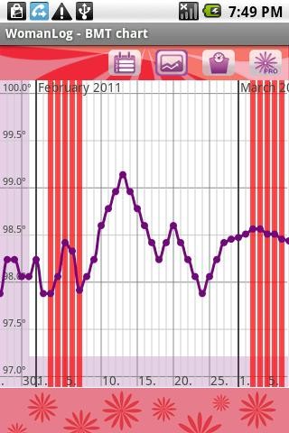 月経周期、月経期間の管理、予測をはじめ、一目でわかるい体重管理、基礎体温のグラフ化、
