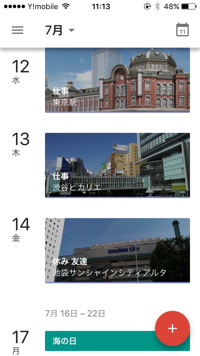 場所を追加すると、ホーム画面にその場所の写真が表示されるので、パッと見ただけで、今日はここだ!というのがわかります。