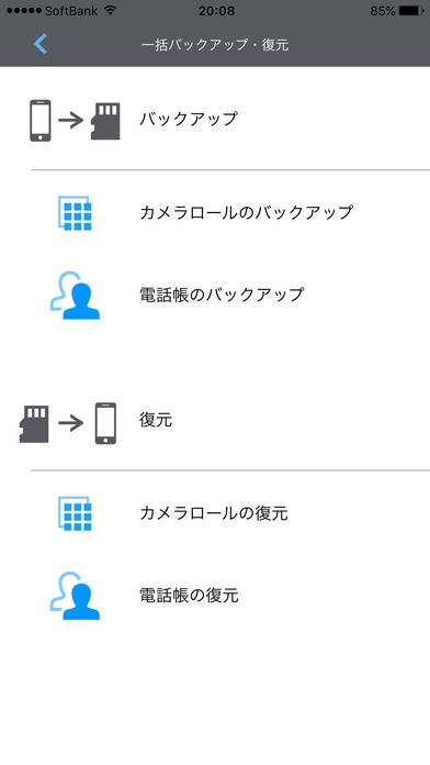 iPhonのカメラロール、連絡先に保存されたデータを、簡単な操作でバックアップ/復元することができ【memory keeper】!