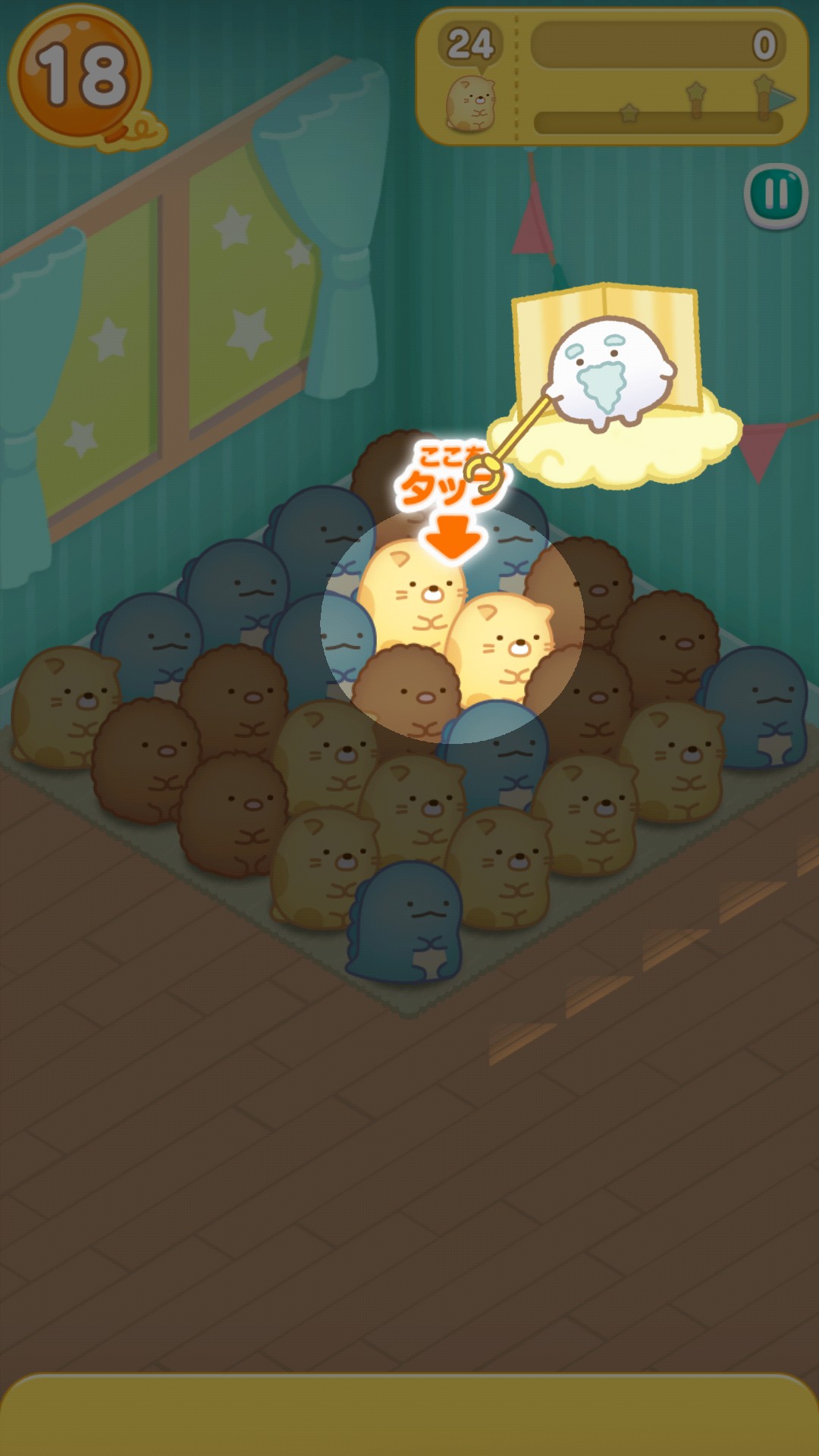 部屋のすみっこに集まった可愛いキャラクターたちをタップして、爽快なパズルゲームを楽しみましょう。