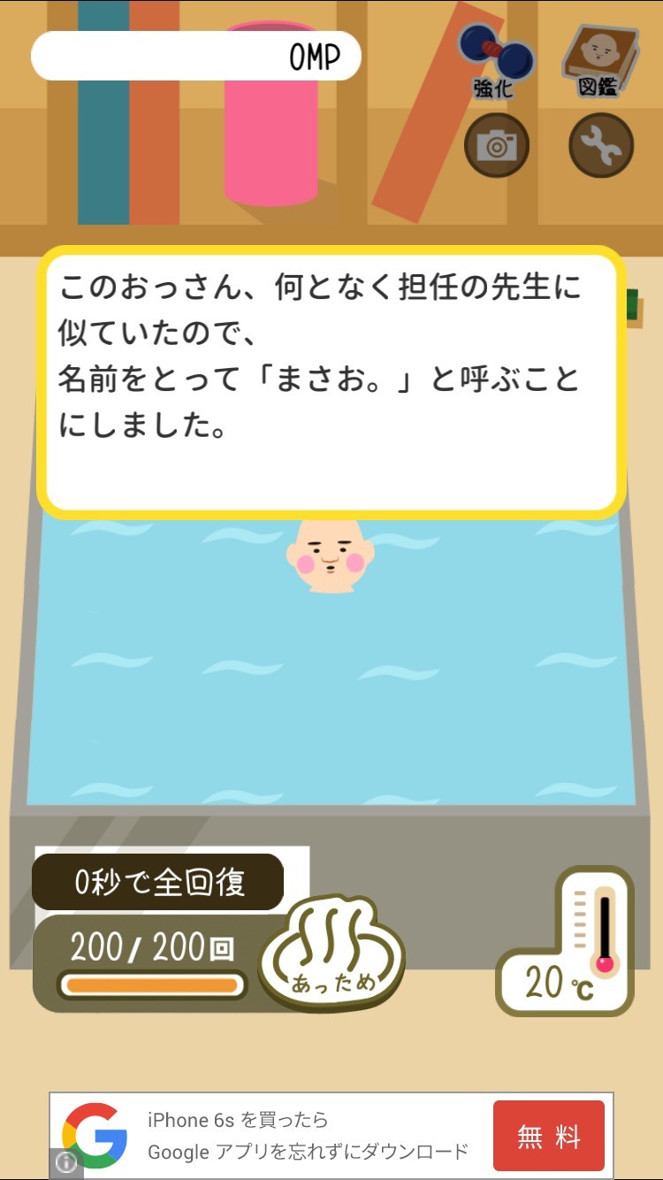 「まさお。おっさん研究家」は、小さいおじさんを育てる癒し系育成ゲームです。