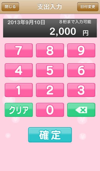 入力するテンキーが大きくて計算機のような数字配列になっているので、入力作業も楽に行えます。支出履歴が見られるので、使い過ぎ防止や、節約ができているかの確認もできます。貯金に回したい金額も入力できるので、貯金を考えながら管理したい時にも便利です。